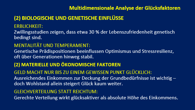 Die folgenden Abschnitte fassen zentrale Determinanten des Glücks zusammen, wie sie aus aktuellen empirischen Studien und Metaanalysen hervorgehen. Ziel ist es, ein integratives und umfassendes Verständnis von Glück zu entwickeln, das genetische Prädispositionen, gesellschaftliche Rahmenbedingungen und individuelle Strategien einbezieht und verknüpft.